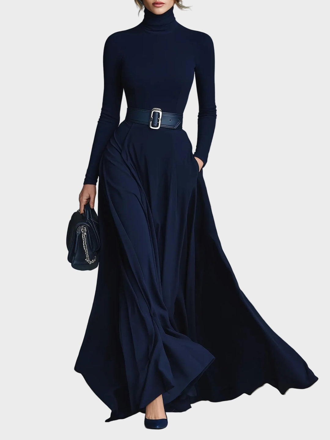 Kornelia - Maxi pletené šaty s vysokým golierom