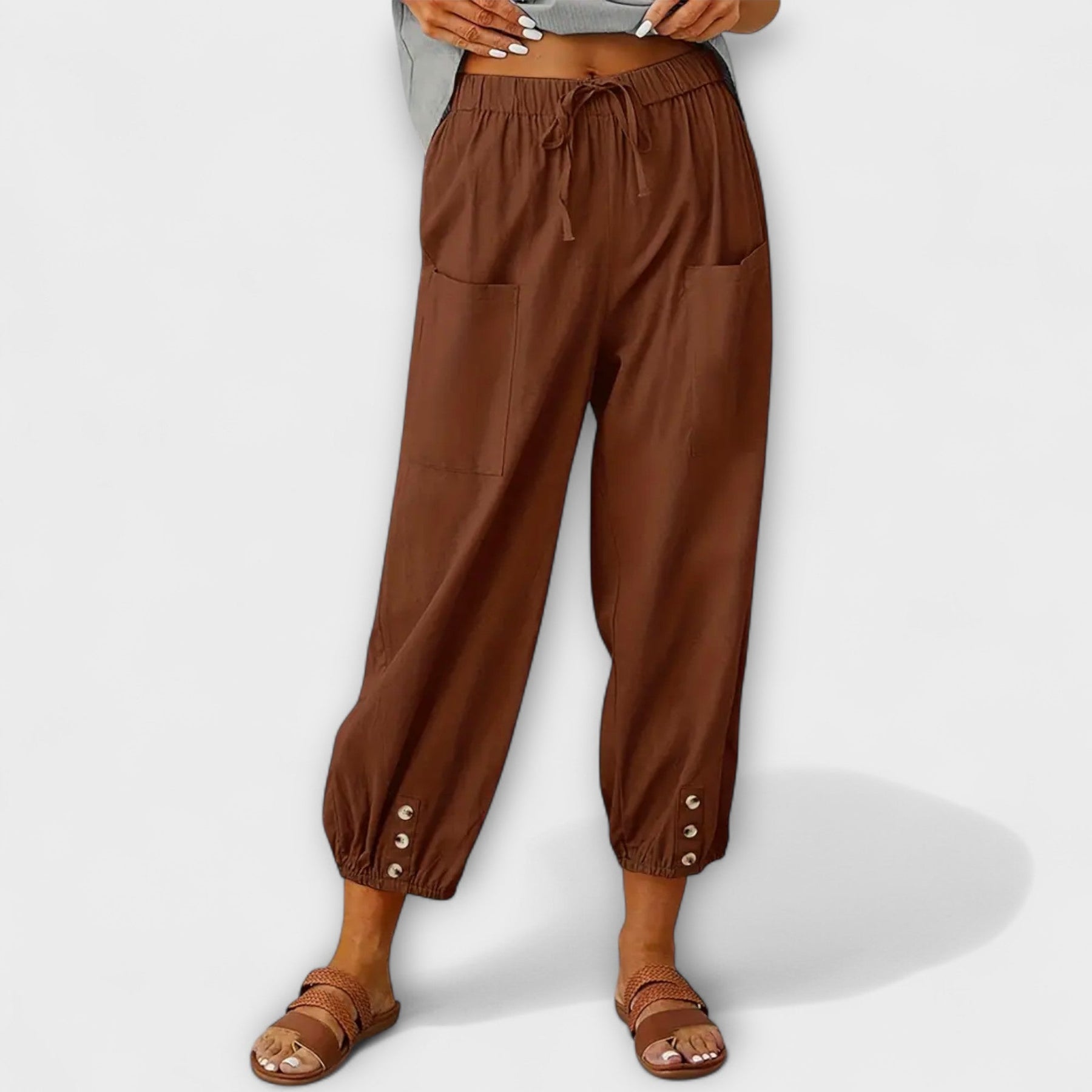 • Voľný štýl: Ideálne na každú príležitosť – či už na nákupy alebo na pláž, haremové nohavice Kiara ľahko prinesú boho-chic atmosféru.