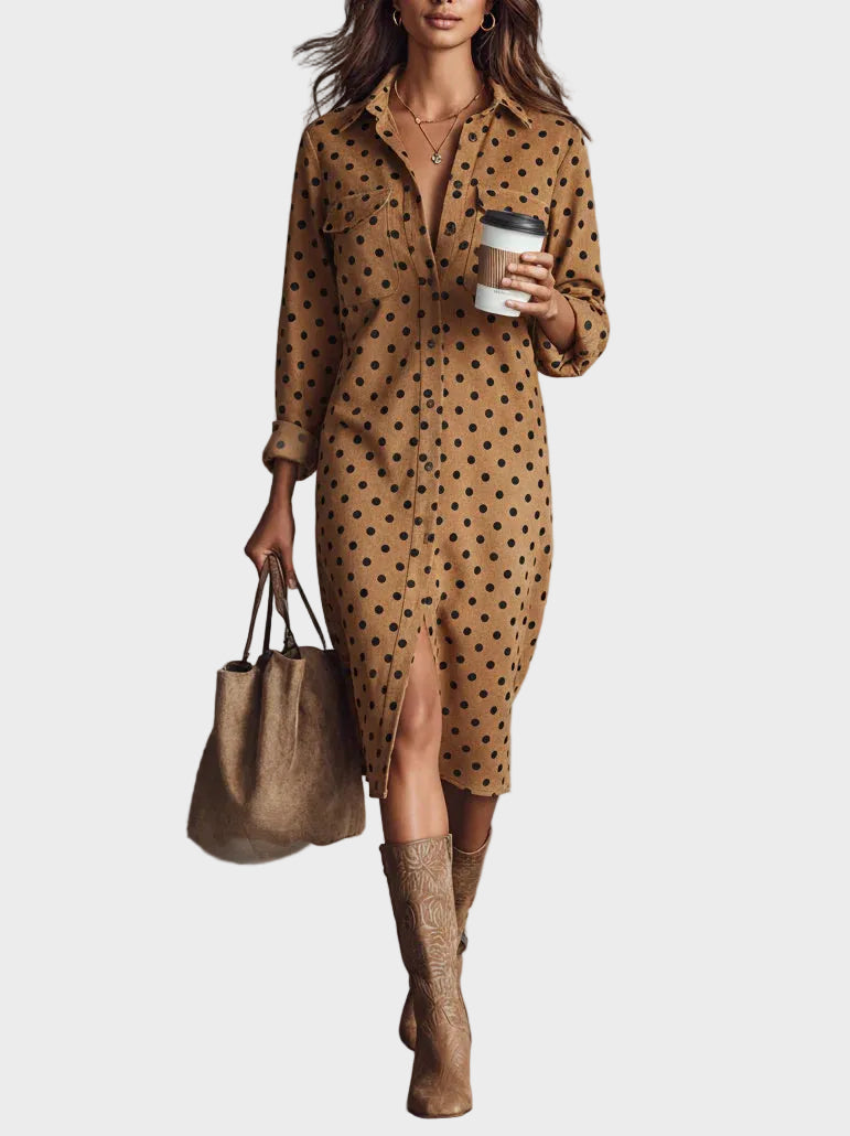 Midi šaty s potlačou bodiek z ekokože
