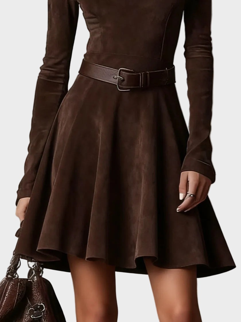 Vintage Hnedá Sukienka z Zamszu s Golierom