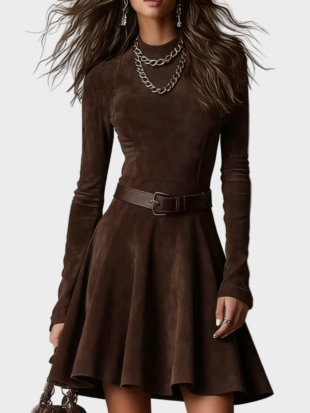 Emanuj vintage atmosférou s touto sukňou z zamszu s golierom. Vyrobená z mäkkého zamszu, táto štýlová sukňa má pohodlný golier a priliehavú siluetu v páse, ideálna na vrstvenie a na neformálne výlety.